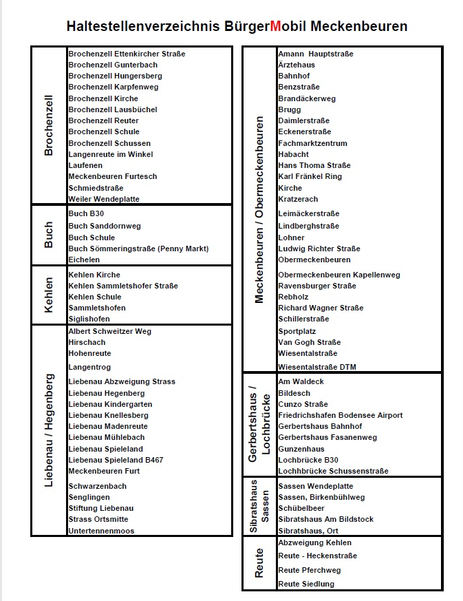 Haltestellenverzeichnis